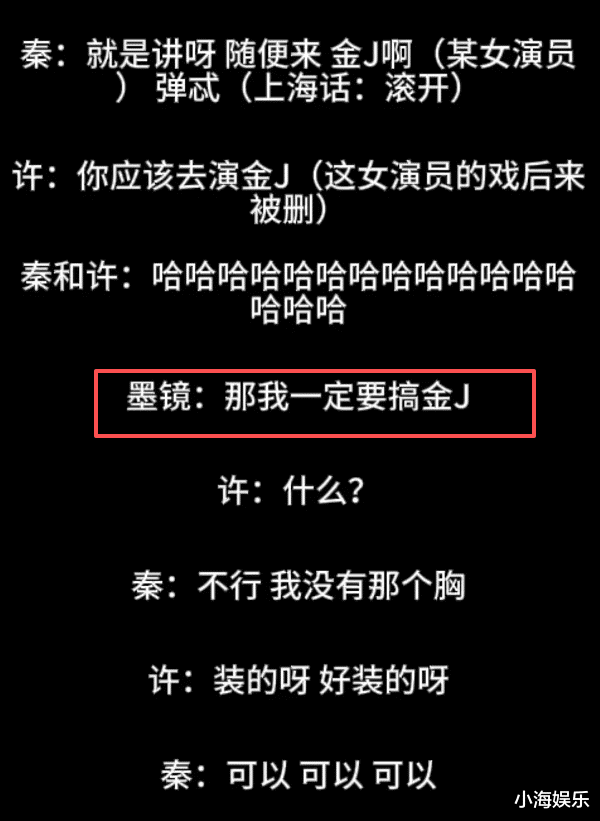 而金靖就更惨了,耽误了时间,浪费了精力,出演了剧中的角色。但最终被删除的一干二净不说。还被导演和编剧私下蛐蛐身材,甚至开黄腔调。即便当时王家卫可能是以调侃秦雯为主,但把金靖带进去,也是很冒犯的。