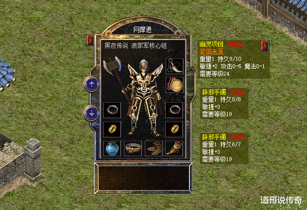 第三,敏捷套装令人惊讶的是这位战士玩家选择了高敏捷套装,如上图所示,敏2攻5魔1幽灵项链不错,属于稀有品种,一对辟邪手镯也是敏3的加点属性。这三件套加了敏8攻5魔1的属性,对上战士玩家的攻击时确实滑溜。